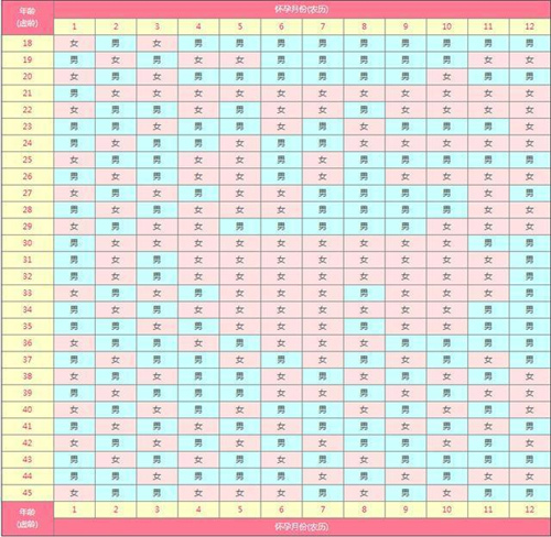 3、出生年月+9个月的农历虚龄为30岁,受孕月份在农历一月份预测生男孩,受孕月份在农历四月份预测生女孩。