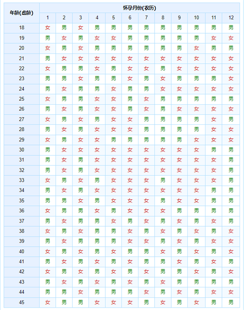 生男生女表由横坐标和纵坐标两部分组成,横坐标为怀孕月份,纵坐标为年龄,横纵坐标对上即可推算出生男生女,一般以妇女的虚岁和怀孕的农历月份来推算受孕年龄,并通过月份来对照观察孩子的预产期,如果显示为男孩则推算生男,显示为女孩则推算生女。