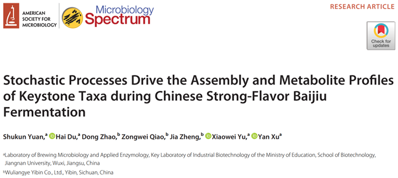 【中国白酒网】近日,五粮液与江南大学徐岩教授团队联合攻关取得新成果。基础研究文章《Stochastic processes drive the assembly and metabolite profiles of keystone taxa during Chinese Strong-flavor Baijiu fermentation》(随机过程驱动中国浓香型白酒发酵过程中关键类群的组装和代谢)在美国微生物学会主办的知名期刊《Microbiology Spectrum 》(微生物学谱Q1区,影响因子9.043)刊发(全文链接:https://journals.asm.org/doi/10.1128/spectrum.05103-22)。