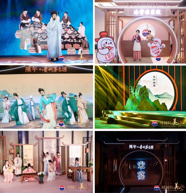 活动以宋代市集、西园雅集、宋时雅宴三个篇章逐一开展。宋代市集以《清明上河图》为美学原型,打造充满市井烟火气息的市集景象,营造穿越千年的沉浸之感,让参与者感受宋代市井之美;西园雅集以《西园雅集图》为美学原型,通过演绎挂画、插画、焚香、点茶“宋时四雅”美学生活,让参与者从“观、触、闻、尝”四维,品味陈年贵州茅台酒的色香味格,感受宋代雅集之美;宋时雅宴以《瑞鹤图》为美学原型,结合宋代词章,打造极简风格宋代宫廷宴饮场景,让参与者感受宋代宴饮之美。